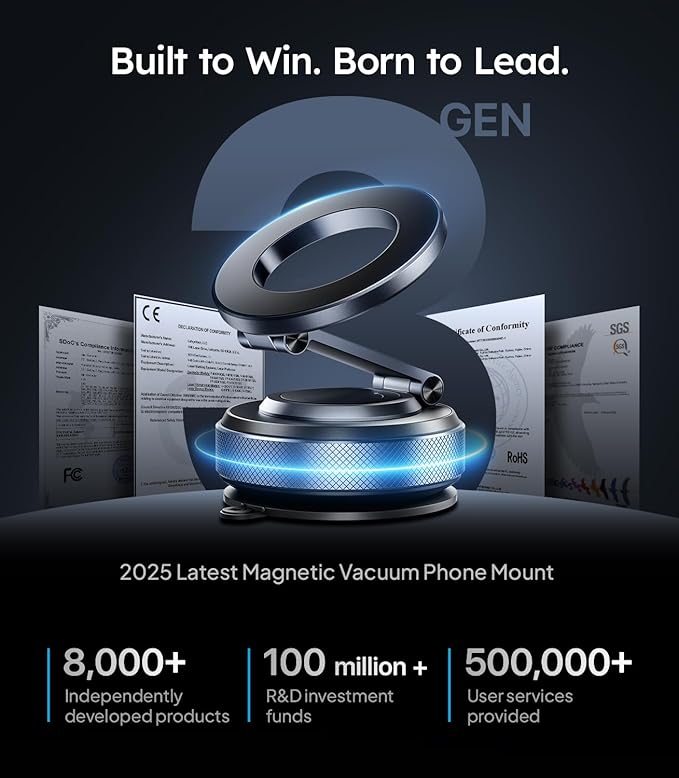 Wigoo Vacuum Magnetic Phone Holder for Car for Magsafe [80LBS Suction & 3000gf Magnetic] 360° Adjustable Car Phone Mount, Cell Phone Holders for Your Car, for iPhone 17 Pro Max 16 15 14 13 12 Air Plus