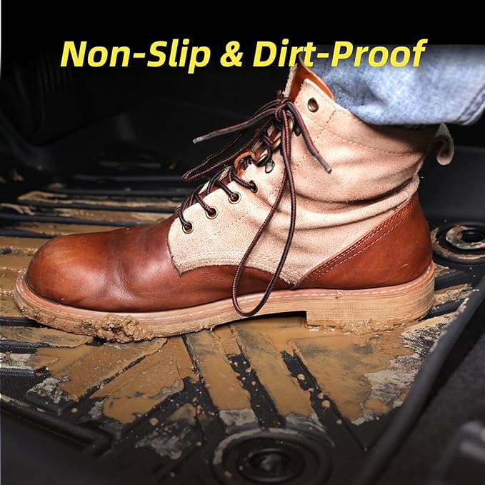 - 【True All-Weather Protection】Engineered with deep channels and high walls to form a contained spill-proof system. Confidently tackle rain, snow, mud, and debris—everything is trapped within the mat, keeping your factory carpet perfectly clean. The textured, wear-resistant surface withstands extreme temperatures, offering year-round defense that’s built to last.