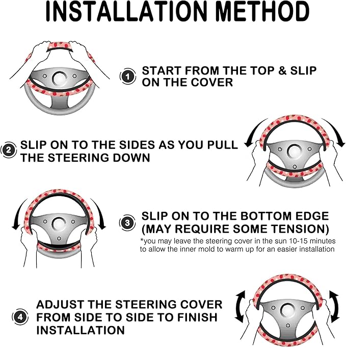 - Quick Installation: No tools? No problem. Just stretch the wheel cover over your steering wheel, adjust it for a secure hold, and you're ready to hit the road—in seconds