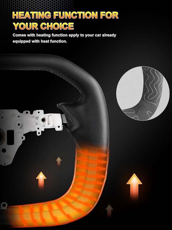 ZIMABLUE Black Cyber Truck Steering Wheel For Tesla Model Y Juniper Accessories 2025, Black Nappa Leather for Tesla Model Y Juniper 2025 With Heating Function,Without stripe