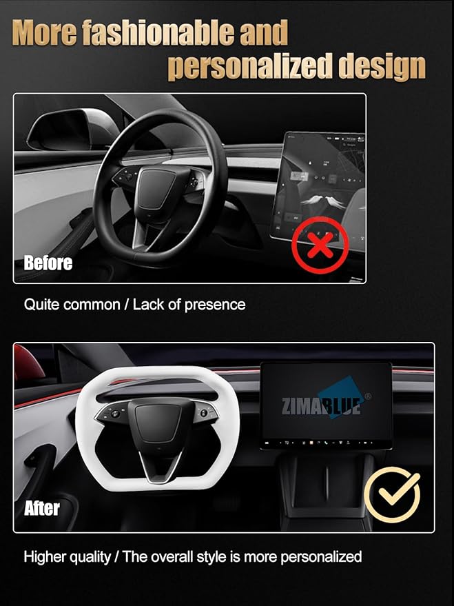 - Unique Yoke Design: Flaunting a distinct yoke configuration, this steering wheel infuses a contemporary and athletic aesthetic into the interior of the 2024-2025 Model 3. Set your vehicle apart from the masses, making a bold statement of individuality and voguish style.