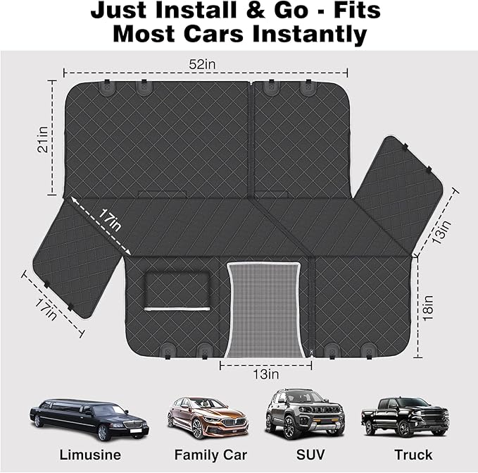 - ๐ ๐๐ง๐ข๐ฏ๐๐ซ๐ฌ๐๐ฅ ๐ ๐ข๐ญ ๐๐จ๐ซ ๐๐จ๐ฌ๐ญ ๐๐๐ซ๐ฌ: Designed to fit the back seat covers for cars โ including sedans, SUVs, pickup trucks, and hatchbacks. This adjustable, one-size-fits-most dog seat cover installs quickly and securely in minutes, making it the perfect protection for pet owners on the go, no matter what kind of car you drive.