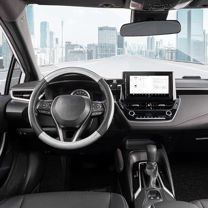 - ARMOR UP YOUR CAR INTERIOR: The durable and easy-to-install steering wheel cover is the premier option for covering an old or worn original factory steering wheel. The carbon fiber pattern and delicate splicing design add texture to the interior of your car.