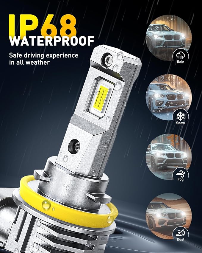- Unmatched 80,000LM Output: Equipped with high-performance chips and a 6500K cool white temperature, AUXITO H11 9005 LED bulb combo delivers 900% more brightness than standard halogen bulbs. Experience dramatically improved road coverage and long-range visibility for safer, more confident night driving.
