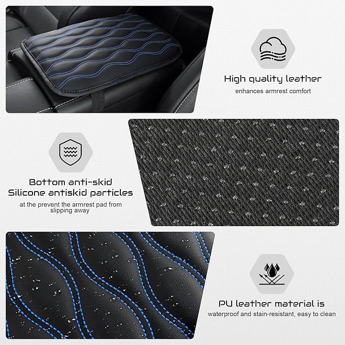 - 【Protection】With waterproof leather and non-slip padding, this car armrest mat protects your console from spills, sweat, pet paws, and UV rays, providing total protection for your car's armrest compartment. Easy to clean, simply wipe with a damp cloth!