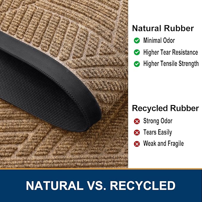 - 【Sturdy & Non-Faded】: Good quality natural rubber makes the door mat long-lasting. Not easy to tear and excellent tensile strength to withstand all weather and seasonal changes. Odorless and fastness to fading makes the process of reuse more pleasant.