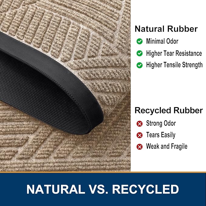 - 【Sturdy & Non-Faded】: Good quality natural rubber makes the door mat long-lasting. Not easy to tear and excellent tensile strength to withstand all weather and seasonal changes. Odorless and fastness to fading makes the process of reuse more pleasant.