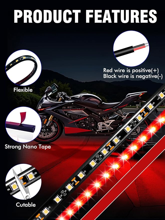 - 【Package】8pcs X 11inch/28cm Red car led strip lights,connect wire length:38inch/96cm.