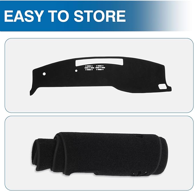 - [Easy To Install And Store] Install our foldable dashboard carpet cover just need few time. Clean the car dashboard at first, and then put the dash mat cover on it. Use the Double Sided Tape help to eliminate slippage. The interior dash cover can be stored with folding.(If the dash cover is wrinkled when you take it out of the package, you can use a steamer to flatten it.)