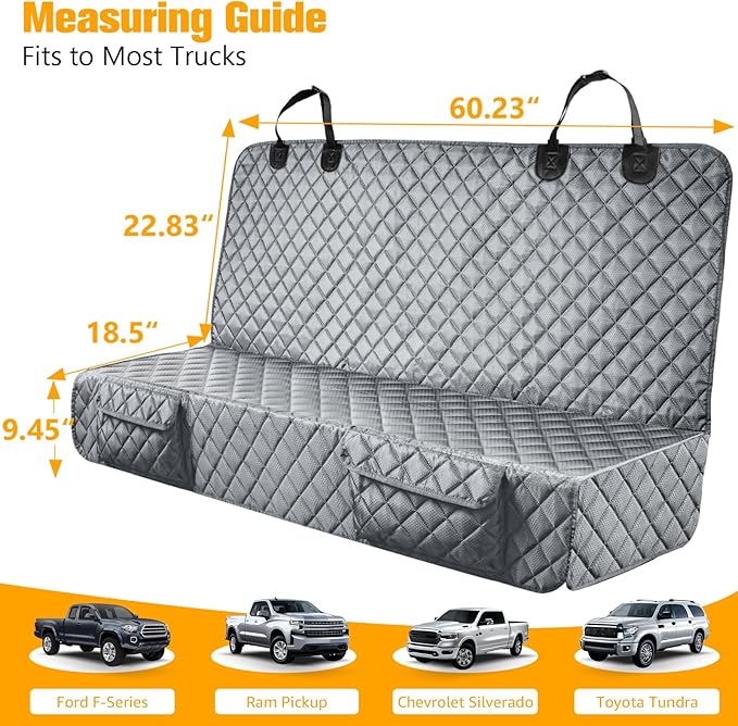 - Ustomized for Truck: Measures 60” L x 50.7” W, it's niquely designed and customized for truck. Such as Ford f150/Ram1500/Nissan Frontier/Toyota Tacoma/GMC Canyon/Silverado/Chevrolet Silverado 1500. It offers a snug, flat fit. Especially for ford f150 seat covers.