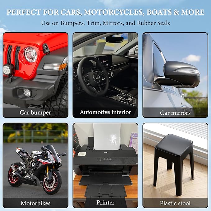 - Water-Resistant, Streak-Free Formula:Stop dealing with products that streak after the rain! Our plastic restorer repels water to prevent streaking, leaving your trim looking flawless no matter the weather. Designed as a long-lasting black trim restorer solution finish, it survives rain and keeps your car’s plastic looking like new for months.