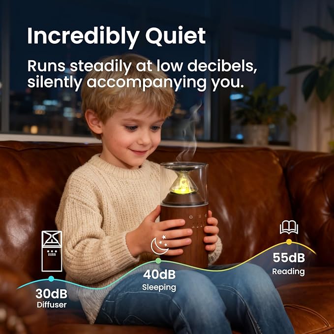 - HOURGLASS DESIGN: The glass design of the BEEGROW diffuser is inspired by the hourglass shape, symbolizing the flow of time and every precious moment of life. Each drop of essential oil marks the recording of beautiful moments. As the mist releases, time and fragrance blend together, making every moment more memorable—"Time now has a scent".