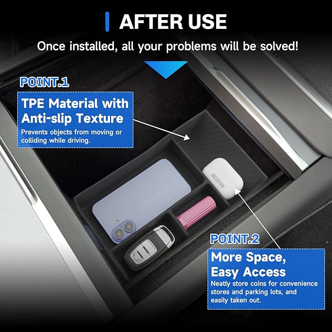 - Premium Quality: This 2026 Model Y center console insert box is constructed with high-quality Silicone material, Its sturdy construction ensures longevity and durability. it guarantees that your 2026 Model Y will enjoy the benefits of this 2026 Model Y console organizer box for an extended period of time