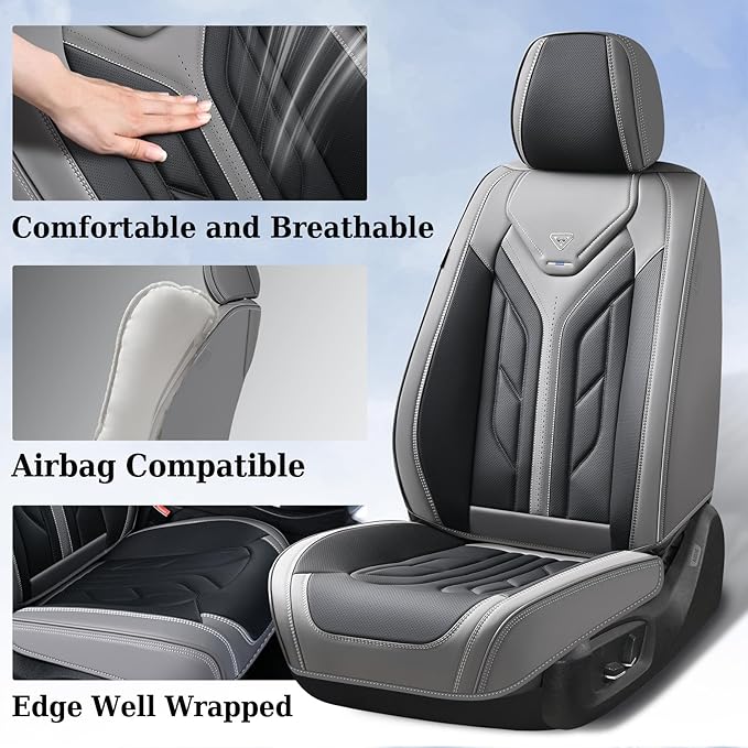 Coverado Car Seat Covers Full Set, Automotive Seat Covers Car Seat Protector Car Seat Cushion, Waterproof Leather Seat Covers for Cars, Universal Fit for Most Sedans SUV Pick-up Truck(Gray&Black)