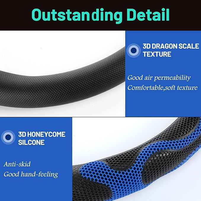 - Anti Slip Grip: ensuring comfort and safety, our truck steering wheel covers feature an grip with an anti slip 3D honeycomb design; This precise design maximizes grip stability, reducing the risk of mishandling and ensuring smoother drives