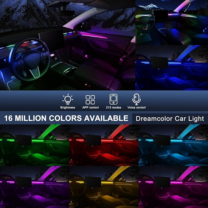 - 【 App Control & RGB Smart IC Dreamcolor】The RGB Ambient Usb Lighting Kit Fiber Optic provides an app with Bluetooth control. The dreamcolor acrylic interior LED strips lighting effect of the upgraded RGB Smart IC built-in color chase mode looks like a regular chase, bouncing, dancing and flashing bar. If you don't want a chase or blinking mode, you can also choose a static color mode in the app. MAODANER also supports voice control mode, timed activation and more.