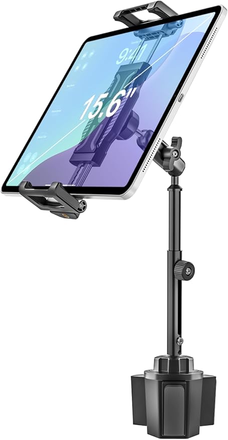 - 【Easy Installation】This car cup holder tablet holder has a user-friendly design. In just 3 seconds, you can insert the car phone holder into the cup holder and rotate it to lock ——no tools required. This car iPad holder is suitable for cars, SUVs, trucks, RVs, pickup trucks and golf carts with round cup holders. It's a must-have for road trips, ensuring your long drives are safe and comfortable.