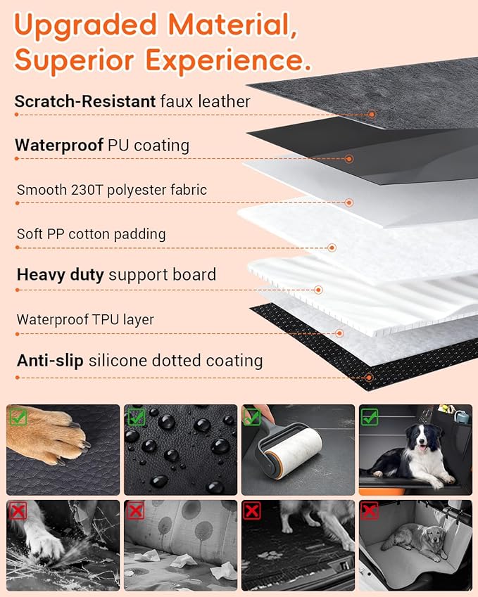 - πππ% πππππ«π©π«π¨π¨π ππ πππππ‘ππ« πππππ«π’ππ₯: Features scratch-resistant, 100% waterproof premium PU leather that repels muddy paws, shedding fur, and sharp claws, providing superior protection compared to traditional Oxford cloth covers