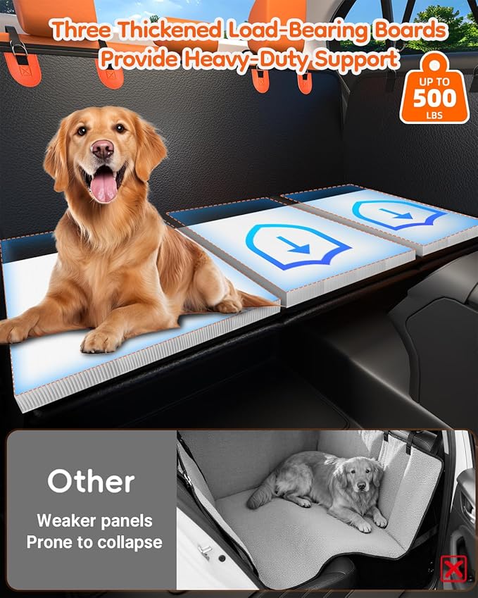 - πππ«π ππ¨πππ¨π¦ πππ¬π’π π§ ππ¨π« ππ¨π«π ππ©πππ: Creates a rigid bridge that supports up to 500 pounds without collapsing, turning your back seat into a stable dog car bed with 48% more room for your pet to stretch out and relax comfortably
