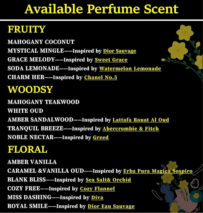 - 🌸 A Scent for Every Mood – Multiple Fragrance Options:From soothing florals and crisp fruits to warm woody notes, each fragrance is crafted with carefully selected natural ingredients. Transform your car into a personal sanctuary—relaxing, refreshing, and uniquely yours.