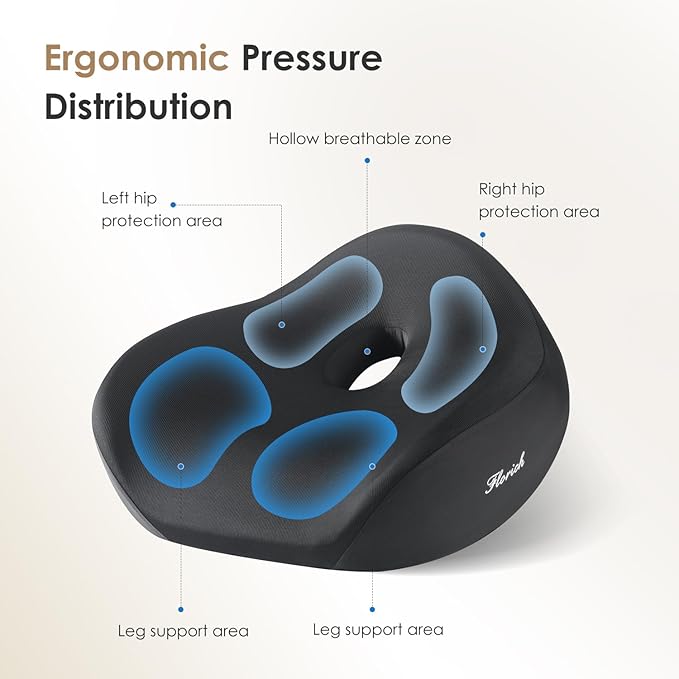 - ⭐Breathable 360° Circumferential Support: Our 360° circumferential support memory foam seat cushion wraps hips and lower back evenly, locking in natural posture to ease back/tailbone strain. Its premium foam disperses pressure gently, while breathable, moisture-wicking fabric keeps you cool during long sits. Durable, versatile for cars/offices—all-around comfort in every use.