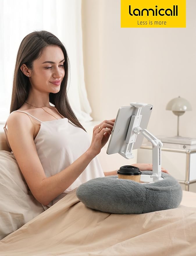 Lamicall Tablet Pillow Stand Holder - [Food-Grade Bowl][Soft & Fluffy] Lap Kindle iPad Holder w/Adjustable Arm, Kindle Accessories for Reading in Bed, iPad Stand for 4.7-13" Tablet, E-Reader, iPhone