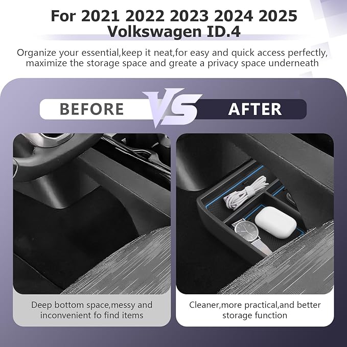 - Easy to Clean β The 2025 ID.4 accessories,2025 ID4 accessories,car armrest glove box 2025 ID 4 accessories contains a rubber tray bottom liner, which can be placed when picking up keys or other items to reduce collision noise.2025 ID4 glove box organizer can also be easily taken out and wiped with a wet wipe for easier cleaning