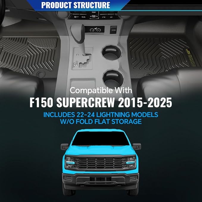 - Material Thermoplastic Elastomer (TPE) : Vehicle Service Type Compatible with Ford F150 Super Crew 2015 2016 2017 2018 2019 2020 2021 2022 2023 2024 2025(Fit 2022-2024 Lightning Models) Compatible with Ford F150 Super Crew 2015 2016 2017 2018 2019 2020 2021 202… See more
