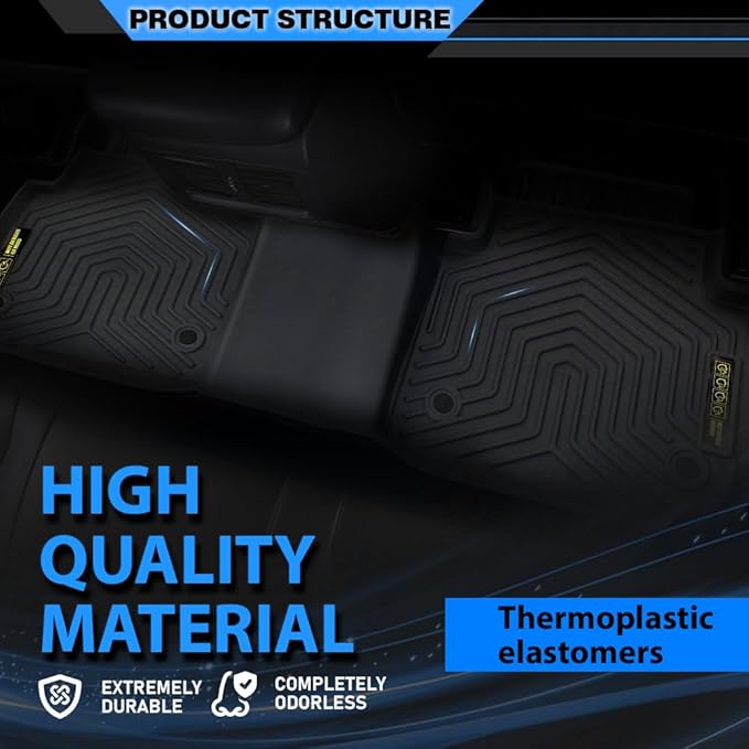 - PREMIUM MATERIAL: Our Floor Mats are made from upgraded TPE material that ensures no unpleasant odors, even in extremely hot weather. The high-strength material not only has an excellent feel and is extremely abrasion-resistant, but also remains resilient even in the coldest weather