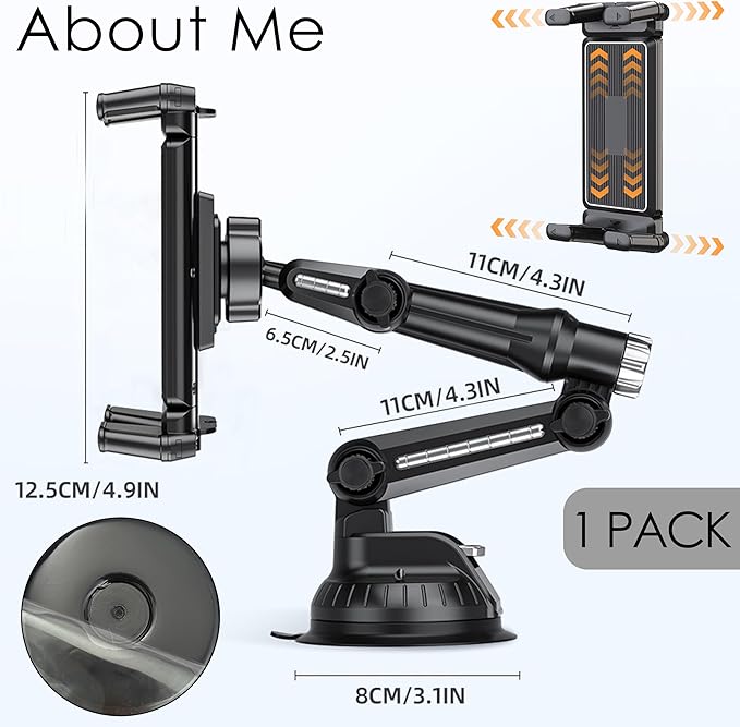 5 in 1 Tablet Holder for Car, Windshield+Dash Car iPad/Phone Mount with Strong Suction Cup & Large Clamp, for Most Phones and Tablets, for Driver & Front Passenger, Adjustable, Upgrade (Black)