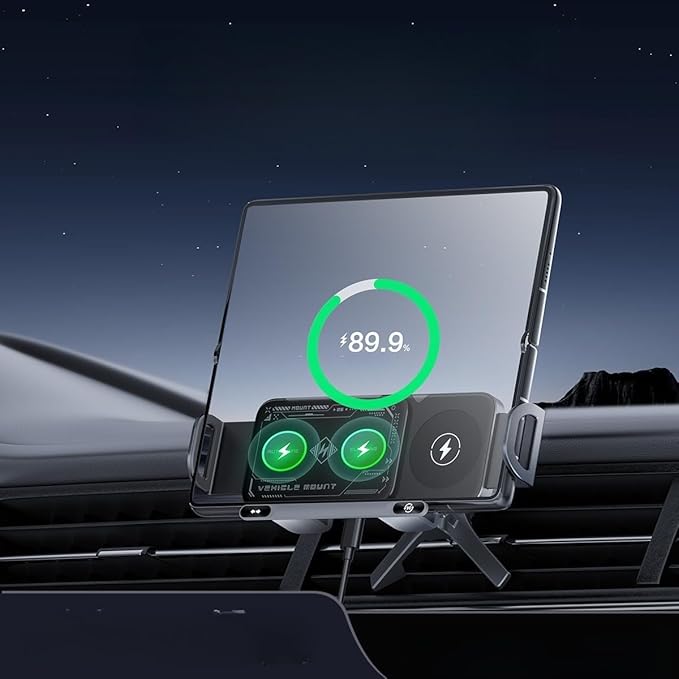 - 15W Fast Wireless Charging & Auto Rotation—— Experience hands-free 15W Qi fast charging for quick power-ups. The holder auto-rotates between landscape and portrait mode, perfect for navigation, videos, and safe driving.