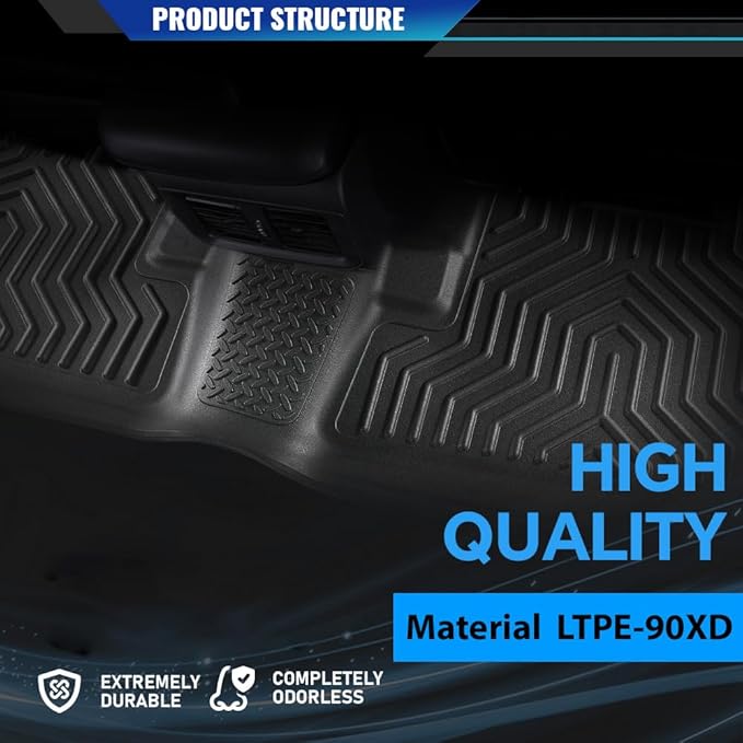 - PREMIUM MATERIAL: Our Floor Mats are made from upgraded TPE material that ensures no unpleasant odors, even in extremely hot weather. The high-strength material not only has an excellent feel and is extremely abrasion-resistant, but also remains resilient even in the coldest weather