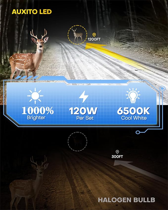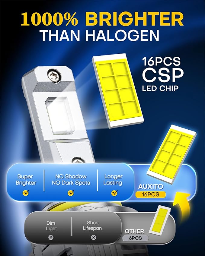 - 【1000% Enhanced Luminosity Output】 AUXITO 9005 9006 delivers 10 times the brightness of standard halogen bulbs through advanced CSP chips, providing exceptional road illumination and extended visual range for nighttime driving