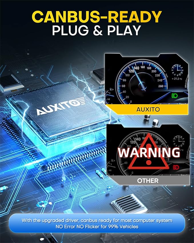 - 【Wide Compatibility】 AUXITO 9005 and 9006 light features an integrated IC controller ensuring seamless operation with 99% of automotive systems, with optional CANbus decoders available for specialized applications