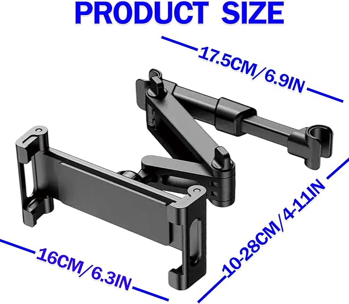 - 【Headrest Compatibility】 Please note before purchasing, tablet holder only suitable for car headrests with straight metal rods.making it compatible with most vehicles, NOTICE: can't fit the backseat without headrest rods