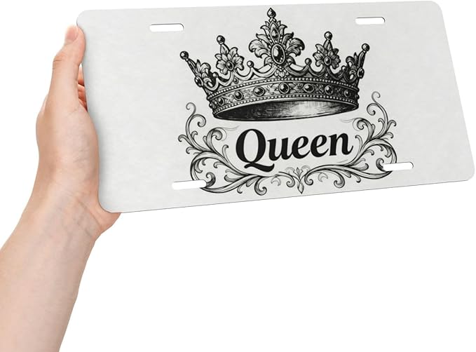 Crown Queen Front License Plate Car Decorative License Plates Aluminum Metal Decor Accessory Novelty Vanity Tag Cover with 4 Holes for Men Women 6" X 12"