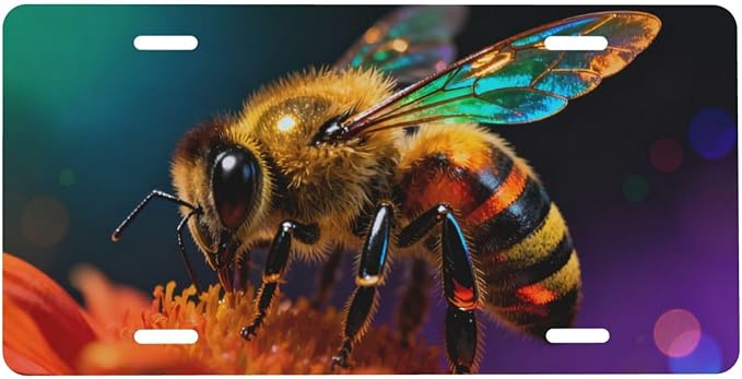 Macro Shot Bees Flowers Front License Plate Car Decorative License Plates Aluminum Metal Decor Accessory Novelty Vanity Tag Cover with 4 Holes for Men Women 6" X 12"