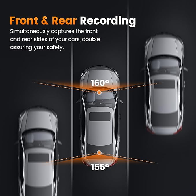 - Ultra-Clear Dual-Camera Recording: The M7 dash cam combines a 4K front camera (170° viewing angle) with a 1080P rear camera (150° viewing angle) to capture sharp, detailed footage of the road. High-resolution video reliably records license plates, street signs, and unexpected events, providing essential evidence when needed